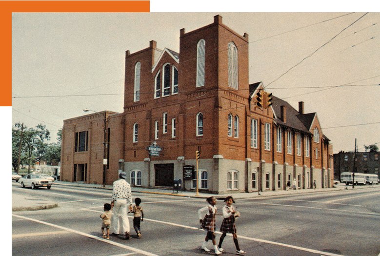 On March 14, 1894, the Rev. Adam Daniel Williams was called to pastor Ebenezer, a struggling church with seventeen members on the roll. During his first year as pastor he was responsible for adding approximately sixty-five members to the church. Rev. Williams liquidated the mortgage, purchased land near downtown Atlanta on McGruder Street and built a new church. With the continued growth of the congregation, the church on McGruder Street soon became too small. In 1900, continued growth lead to the purchase of Fifth Church on Bell and Gilmer Streets. Services continued there until 1914 when the congregation moved to the basement level of the Auburn Avenue site. The congregation moved their worship services to a storefront at 444 Edgewood, in around 1918, while the upper level auditorium was being completed. This construction was completed in 1922. The historic church has undergone several renovations including the addition of the Education Building adjacent to the church in 1956.